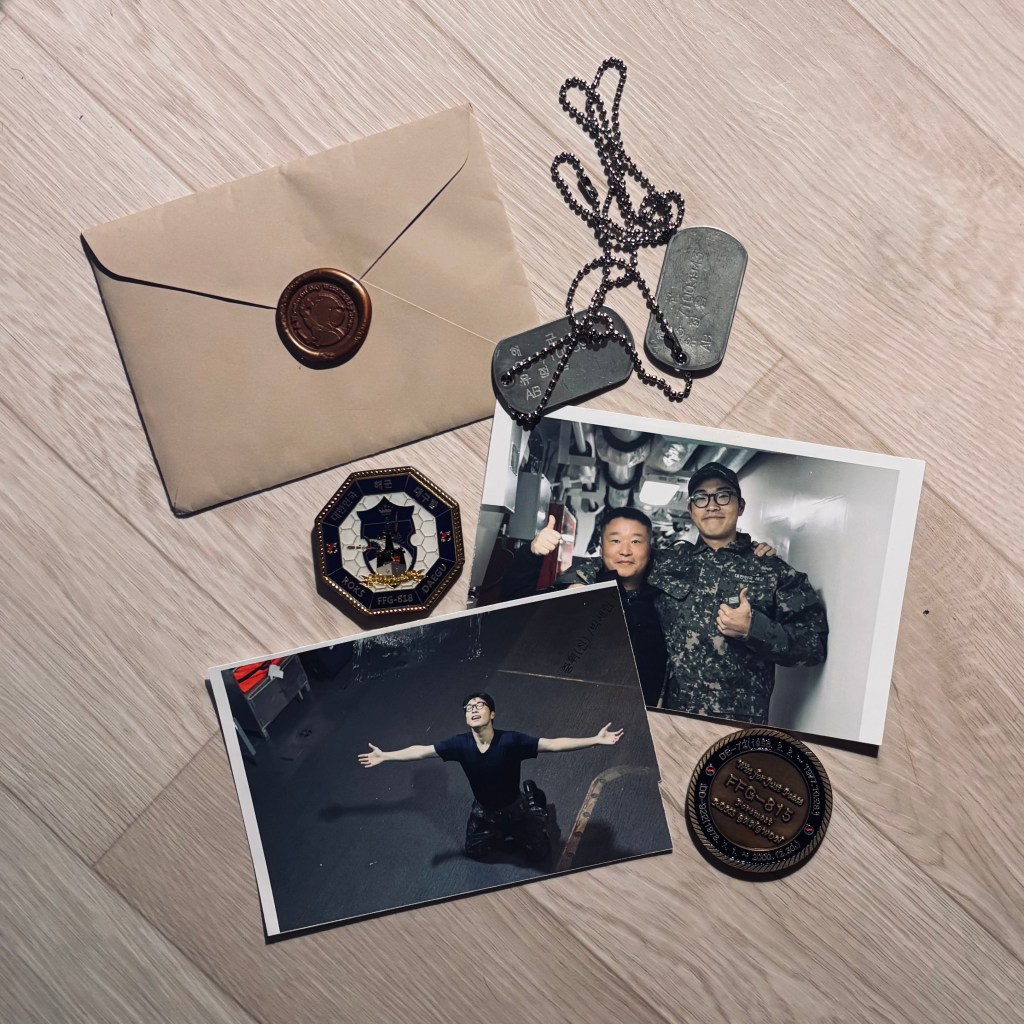 discharge. some photos, a letter and coins from deployment